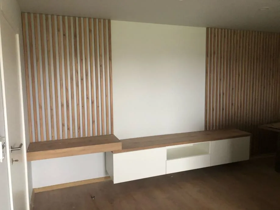 TV komoda sa zidnom oblogom letvicama