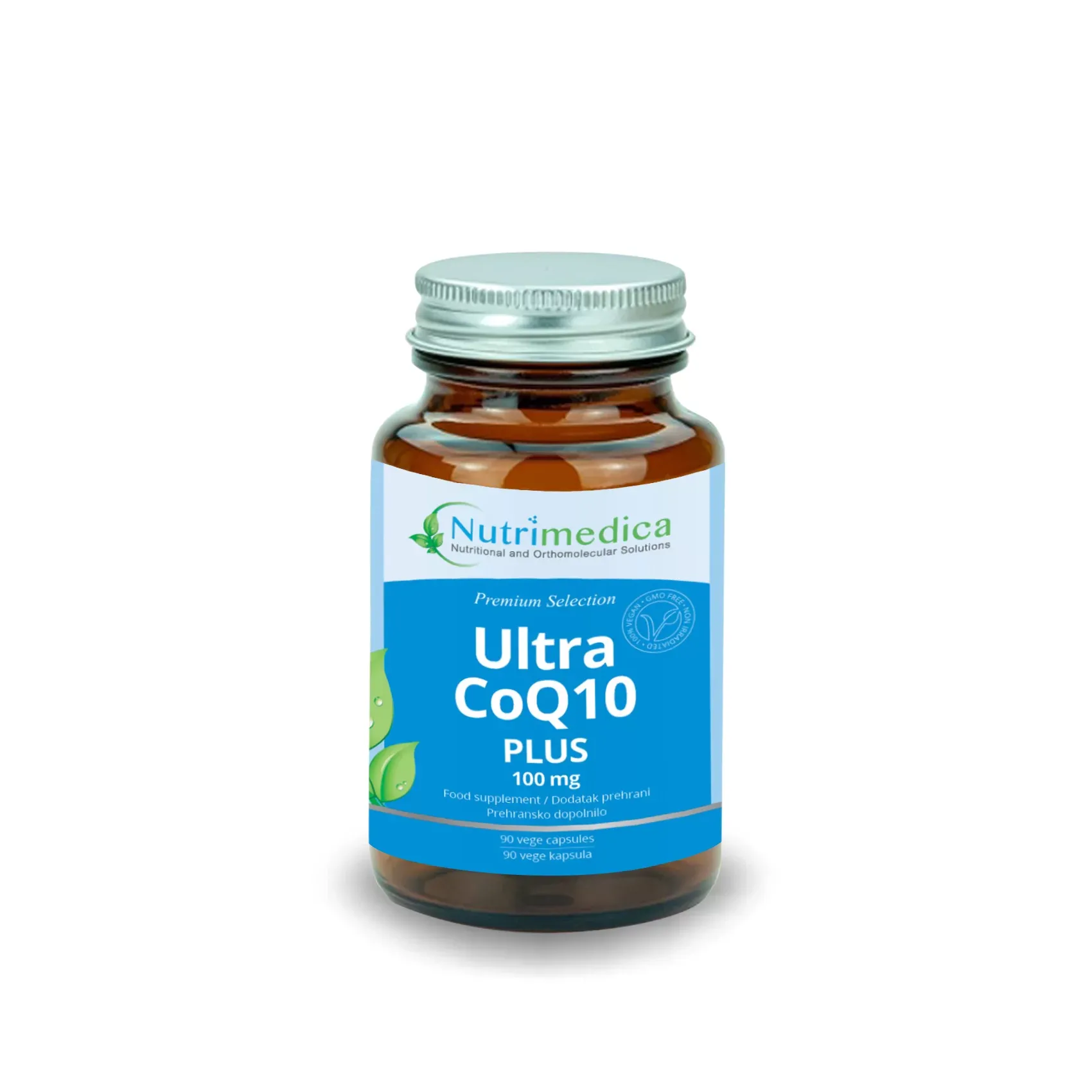 Koenzim Q10 Plus ultra kapsule sadrže 100 mg koenzima Q10 + vitamin C i E za energiju, zdravlje srca i krvnih žila. 90 vege kapsula. Prirodna podrška bez aditiva.