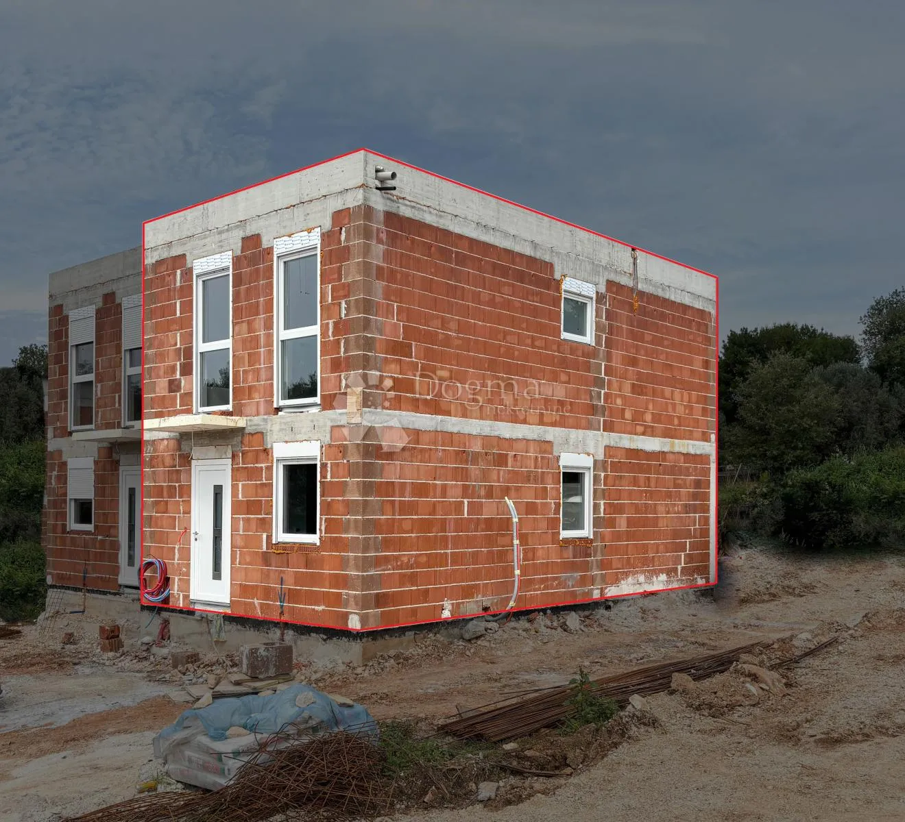 Moderna dvojna kuća s bazenom u blizini mora – Umag (okolica) Na prodaju je moderna dvojna kuća površine 92 m² koja se nalazi na mirnoj lokaciji u okolici Umaga, svega 2 kilometra od mora. Kuća se prostire na dvije etaže – prizemlje i kat – te se smjestila na okućnici od 250 m², idealnoj za miran obiteljski život ili kao investicija za odmor i najam. U prizemlju se nalazi prostrani dnevni boravak s modernim kaminom i kuhinja s blagovaonicom u open space konceptu, koja kroz velike staklene stijene ima direktan izlaz na terasu i dvorište s bazenom. Na ovoj etaži nalazi se i gostinjski toalet te strojarnica. Na katu su smještene tri udobne i moderno uređene spavaće sobe te jedna kupaonica. Uređena i ograđena okućnica površine 250 m² nudi privatnost i sadrži bazen dimenzija 6 x 3 m te prostor za sunčanje, savršen za opuštanje i uživanje tijekom toplih ljetnih dana. Kuća je opremljena podnim grijanjem putem dizalice topline te klima uređajima za hlađenje, dok je stolarija PVC. Planirani završetak gradnje predviđen je za sredinu 2026. godine. Ova nekretnina predstavlja idealan spoj modernog dizajna, funkcionalnosti i odlične lokacije u blizini mora. ID KOD AGENCIJE: IS1518214 Karlo Šestan Asistent u posredovanju Mob: 091/361-1922 Tel: 052/771-458 E-mail: karlo.sestan@dogma-nekretnine.com www.dogma-nekretnine.com