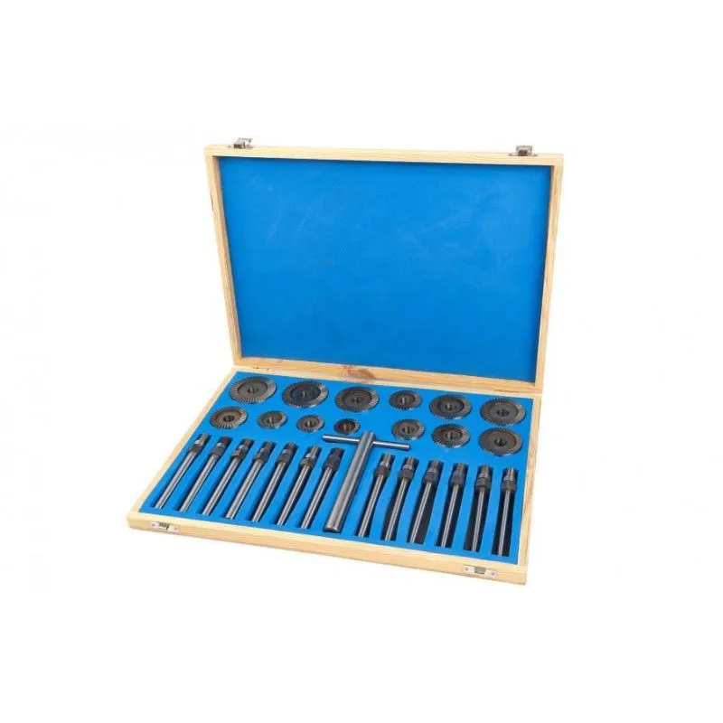 Frezer:kut 45° + 90°:30-32,5-35-37,5-40-42,5-50-52,5-55-57,5-60 mm- 13 vodilica u slijedećim veličinama:6-6,5-7-7,5-8-8,5-9-9,5-10-10,5-11-11,5-12 mm