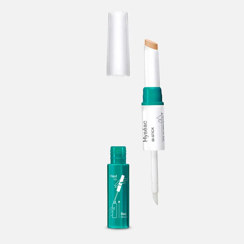 Dvofazni korektivni stik za masnu kožu sa aknama Dvofazni stik koji isušuje, liječi i prikriva akne. Losion: sadrži ekstrakt sladića (matira), AHA/BHA kiseline (isušuju i djeluju keratolitički) i Uriage termalnu vodu (umiruje). Stik: sadrži TLR2 regulirajući kompleks (djeluje protuupalno), pirokton olamin (antibakterijsko djelovanje) i nježni puder (kamuflira akne).