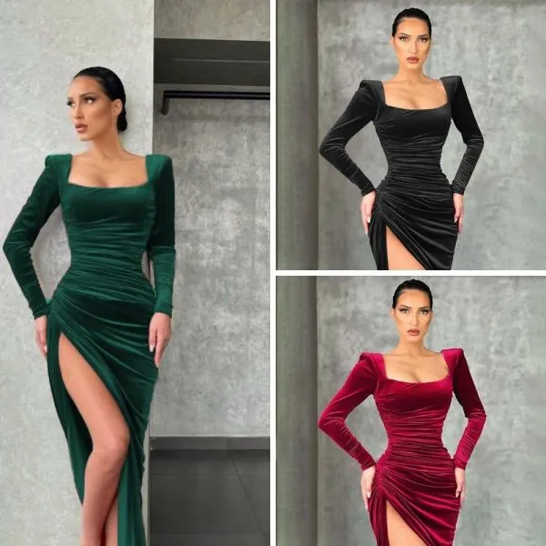 Ova haljina dugih rukava izrađena je od visokokvalitetne poliesterske tkanine, lagane i rastezljive.