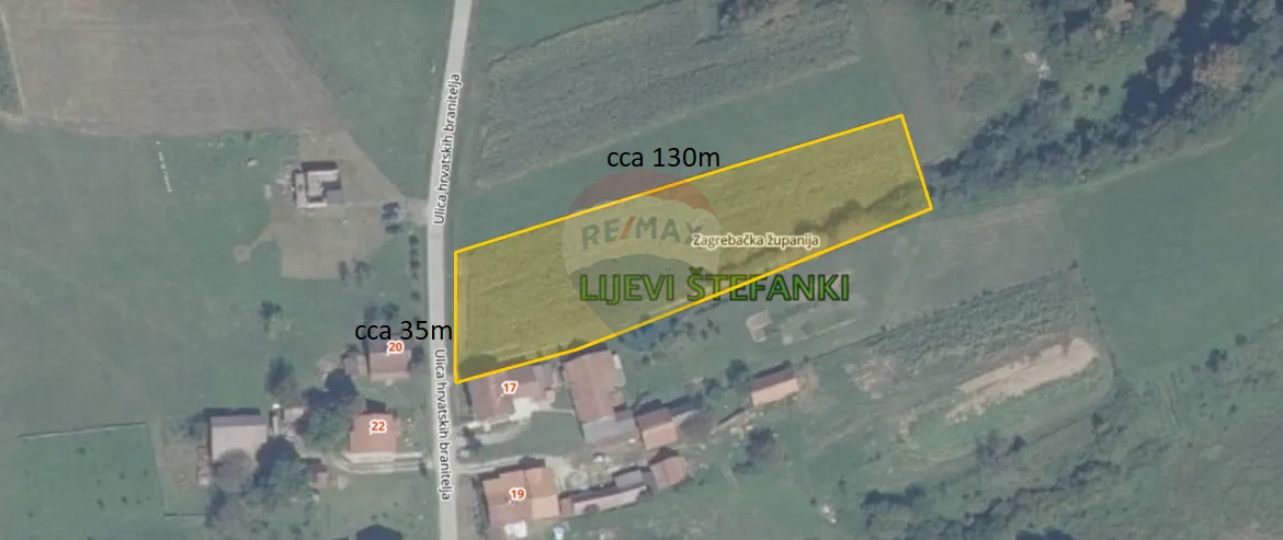Velika Gorica, Pokupsko, Lijevi Štefanki građevinsko zemljište 4220 m2 U malom mjestu, Lijevi Štefanki, pored glavne ceste, prodaje se građevinsko zemljište 4220 m2, širine cca 35m uz cestu, dužina parcele je cca 130m. Pored zemljišta je voda, struja i telefon. U blizini nekretnine su svi sadržaji potrebni za život, poput trgovine, javni prijevoz, zelenilo i crkva, dok su škola i ambulanta u Pokupskom. ID KOD AGENCIJE: 300601005-154 Alenka Klarić Prodajni predstavnik Mob: +385 91 641 3161 Tel: +385 1 210 54 50 Licenca: 218/2025 E-mail: a.klaric@remax-centar.hr remax-centarnekretnina.com