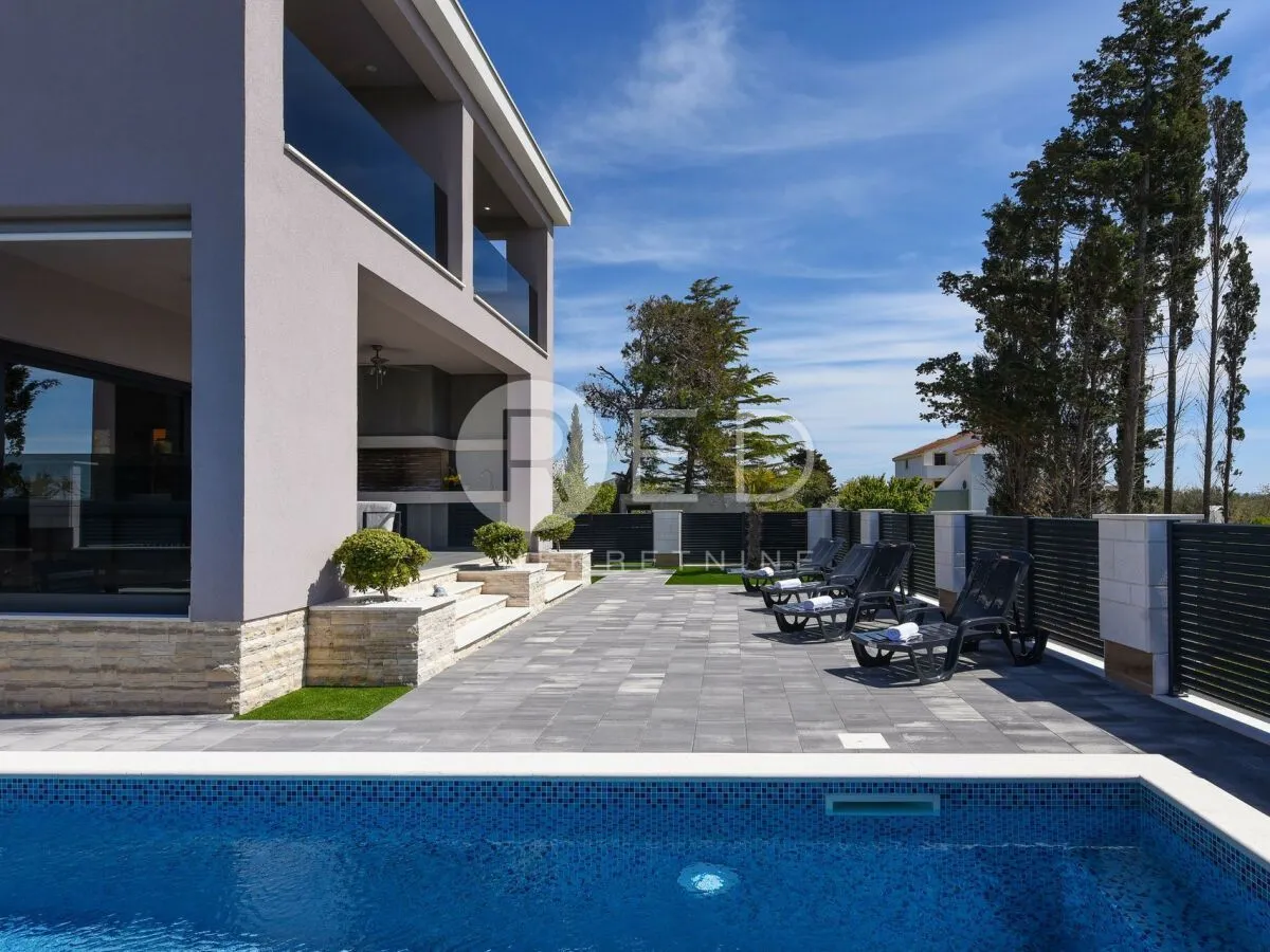 Ako tražite prekrasnu vilu na idealnoj lokaciji, imamo pravu nekretninu za vas. Ova čarobna vila smještena je na površini od 553 m2 s 251 m2 životnog prostora. Vila se ističe po svojim četirima prostranim spavaćim sobama, svaka s vlastitom kupaonicom, koje su opremljene udobnim bračnim krevetima. Tri sobe nalaze se na gornjem katu, dok se četvrta nalazi u prizemlju, osiguravajući maksimalnu udobnost. Prizemlje vile čini elegantna, potpuno opremljena kuhinja s blagovaonicom i udoban dnevni boravak. Osim toga, na raspolaganju je i prostorija za pranje rublja te prekrasna natkrivena terasa s vanjskim roštiljem na plin i ugljen/drva. Interijer i eksterijer vile zrače elegancijom koja se ogleda u minimalističkim detaljima i prigušenim nijansama sive, crne i smaragdno zelene boje. Najzanimljiviji detalj vile svakako je rasvjeta koja krasi strop prizemlja, što će boravak u vili pretvoriti u posebno iskustvo. Također, svaka soba vile nudi prekrasan pogled na kristalno čisto more. Na imanju vile nalazi se prekrasan, grijani bazen od 24 m2, sauna smještena pokraj bazena, oprema za stolni tenis i ostalo. Uživajte u opuštajućim trenucima na ležaljkama pokraj bazena u dvorištu koje je potpuno ograđeno zidom i ogradom od aluminijskih panela. Osim što je ova vila savršen izbor za one koji traže kombinaciju udobnosti, elegancije i prekrasnog pogleda na more, nalazi se na idealnoj lokaciji. Privlaka i okolica nude pregršt sadržaja za sve ukuse, od prekrasnih plaža do vrhunskih restorana i barova. Ova vila je idealna kao rezidencija ili kao investicija za iznajmljivanje. Ako želite uživati u luksuznom boravku u oazi mira, ova vila je pravi izbor za vas! Ne propustite priliku i postanite vlasnik ove čarobne nekretnine već danas. ID KOD AGENCIJE: 320 Lucija Obad Asistent Agenta Mob: 0911104077 E-mail: lucija@rednekretnine.com www.rednekretnine.com