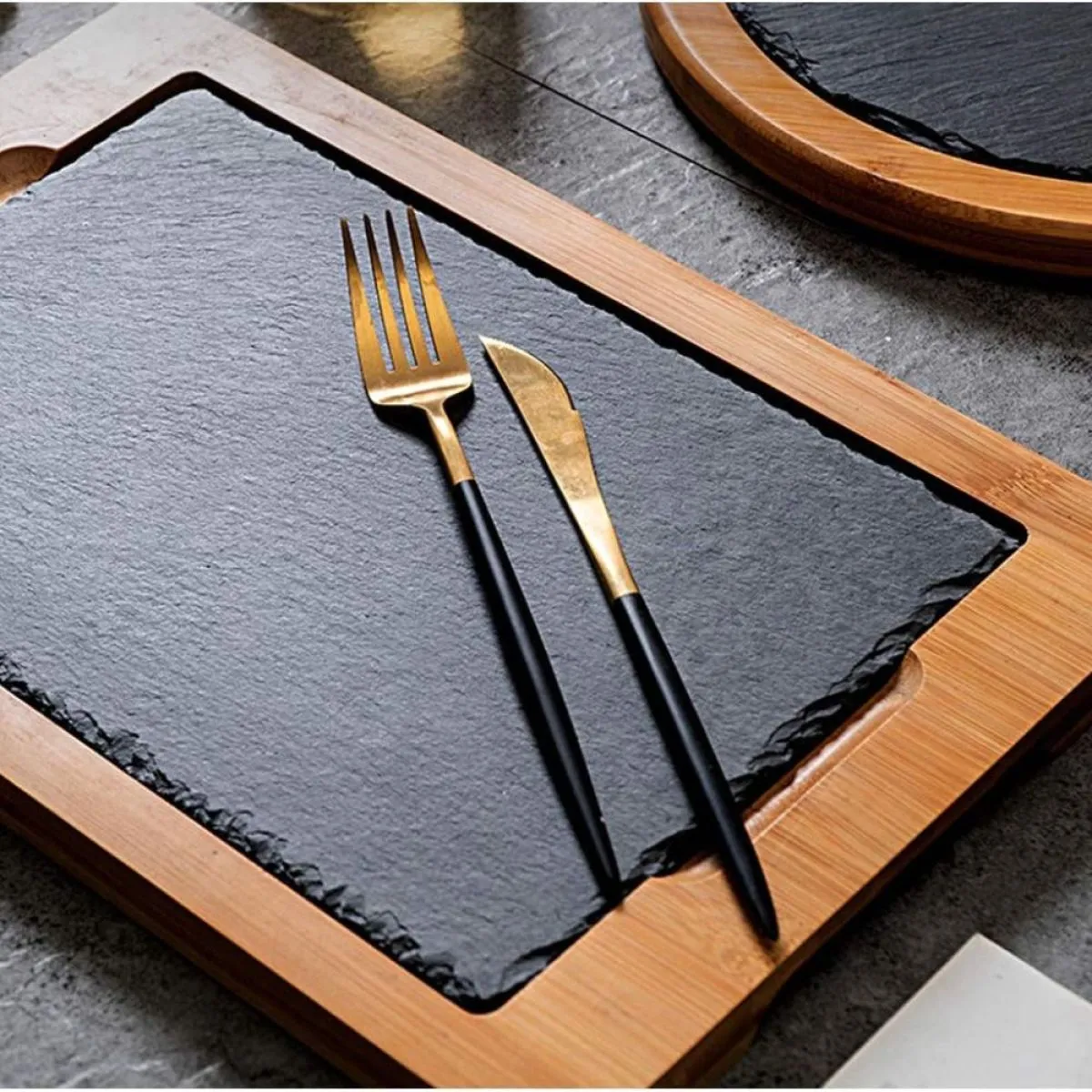 Ova elegantna kamena ploča s drvenim okvirom idealan je dodatak svakom restoranu ili kućnoj kuhinji. Dizajnirana za posluživanje odrezaka, sushija, sireva i raznih delicija, pruža sofisticiran izgled vašim jelima. Kombinacija prirodnog kamena osigurava ne samo estetiku već i dugotrajnu upotrebu.
