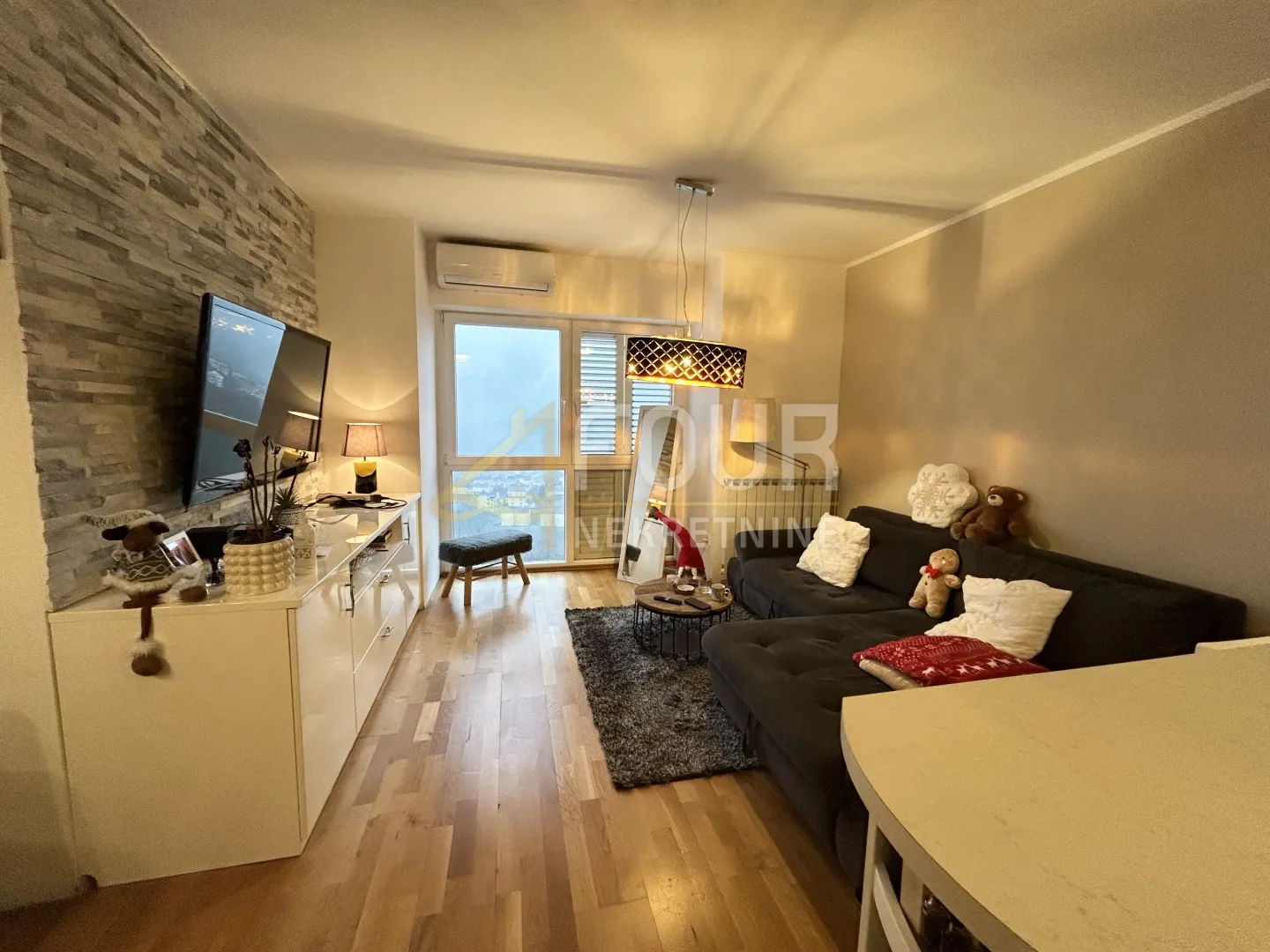 Prodaje se stan na Viškovu, na kraju slijepe ulice okružene zelenilom, kompletno namješten. Rasporedom dvosobni s dnevnim boravkom, ukupne površine 65.04 m2, smješten je u manjoj stambenoj zgradi, orijentiran prema jugu i zapadu, što osigurava obilje svjetla kroz cijeli dan. Iz stana, kao i s balkona, pruža se lijep pogled na more, Učku, otoke i čitav Kvarner. Unutarnji raspored vrlo je funkcionalan te obuhvaća kuhinju s blagovaonicom povezanu s dnevnim boravkom, hodnik, dvije spavaće sobe, kupaonicu i dodatni WC. Opremljen je centralnim grijanjem na plin razvedenim kroz cijeli prostor, PVC stolarijom i klima uređajem, a prodaje se u potpunosti namješten, spreman za useljenje. Nekretnini pripada drvarnica u podrumu površine 6,25 m2, kao i dva vanjska parkirna mjesta u sklopu okućnice. Na korištenje je dostupan i zajednički dio okućnice koji uključuje uređenu livadu s prostorom za roštilj te veliku terasu na vrhu zgrade s otvorenim panoramskim pogledom. Ovaj funkcionalan i svijetao stan idealan je za miran obiteljski život, ali i kao investicija zbog iznimno ugodne i tražene lokacije. Poštovani klijenti, agencijska provizija naplaćuje se u skladu s Općim uvjetima poslovanja. ID KOD AGENCIJE: S4088 Laura Čandrlić Asistent u posredovanju Mob: +385915240853 Tel: +385914944144, +38551619770 E-mail: lauracandrlic@four-nekretnine.hr www.four-nekretnine.hr