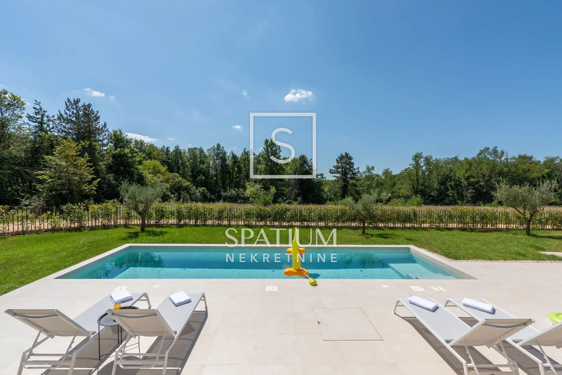 VIŠNJAN, u ponudu smo dobili ovu iznimnu kuću s bazenom, smještenu u mirnom ruralnom okruženju koje nudi savršen spoj privatnosti i udobnosti. Pažljivo projektiran interijer uređen je u toplim, prirodnim tonovima, čime je postignut skladan spoj elegancije i ugodne atmosfere. Otvoreni dnevni prostor povezuje udoban dnevni boravak, blagovaonicu i modernu kuhinju, s izravnim izlazom na prostranu terasu. U vanjskom dijelu smješten je grijani bazen sa sunčalištem – idealno mjesto za opuštanje i uživanje tijekom cijele godine. U stambenom dijelu nalaze se dvije prostrane spavaće sobe, svaka s vlastitom kupaonicom, što osigurava maksimalan komfor i privatnost. Kuća je opremljena sustavom podnog grijanja putem Daikin dizalice topline, dok je za hlađenje i dodatnu udobnost predviđena klimatizacija u svim prostorijama. Grijanje vode u bazenu omogućeno je putem zasebne dizalice topline. Kvalitetna drvena stolarija dodatno doprinosi osjećaju topline i ugode. Okućnica je pažljivo uređena, potpuno ograđena i opremljena električnom kapijom. U sklopu dvorišta nalaze se dva privatna parkirna mjesta. Kuća raspolaže videonadzorom, alarmnim sustavom i portafonom, čime su sigurnost i privatnost vlasnika u potpunosti osigurani. Automatski Rain Bird sustav navodnjavanja olakšava održavanje zelenih površina, dok instalirani Starlink internet omogućava pouzdanu i brzu vezu. Nekretnina se prodaje potpuno opremljena i namještena visokokvalitetnim talijanskim namještajem, uključujući i vinsku vitrinu – spremna za useljenje bez dodatnih ulaganja. Kuća se prirodno uklapa u okoliš, s prirodnim materijalima i bojama koje je čine nenametljivom, ali skladnom s okolnim zelenilom. Ova kuća idealna je za kupce koji traže elegantan dom za svakodnevni život, kao i za one koji prepoznaju potencijal luksuzne turističke investicije. Višnjan je šarmantno istarsko naselje smješteno na brežuljku s prekrasnim pogledom na okolnu prirodu i more. Poznat je po svojoj bogatoj povijesti, slikovitim kamenim uličicama i očuvanoj arhitekturi koja odiše autentičnim mediteranskim duhom. Posebnu prepoznatljivost Višnjanu daje svjetski poznati astronomski opservatorij, koji privlači znanstvenike i zaljubljenike u astronomiju iz cijelog svijeta. Blizina Poreča i jadranske obale, kao i netaknuta priroda koja ga okružuje, čine ga savršenim mjestom za miran život ili odmor. Za više informacija, obratite nam se s povjerenjem. Petra Juričić Agent s licencom +385 91 185 1211 petra@spatium.hr Spatium nekretnine +385 51 272 903 info@spatium.hr ID KOD AGENCIJE: 5768 Petra Juričić Agent s licencom Mob: +385 91 185 1211 Tel: +385 51 272 903 E-mail: petra@spatium.hr www.spatium.hr