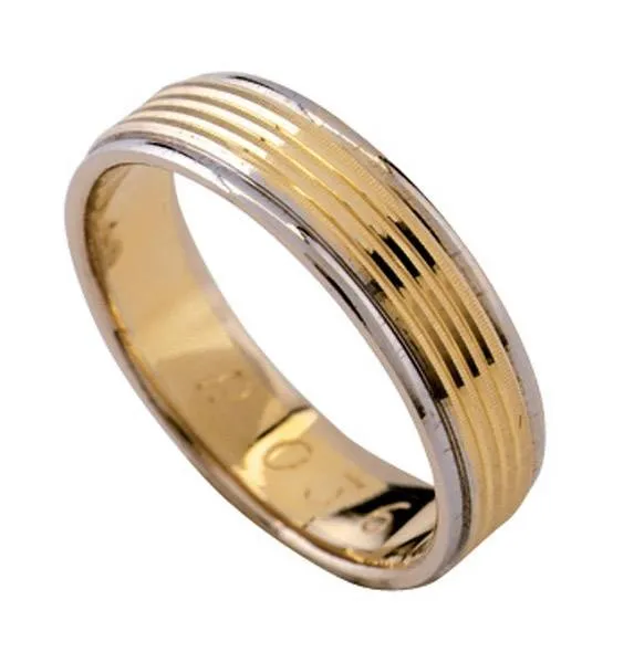 Kombinacija dvije boje zlata. Širina prstena 5 mm (1-3-1).Moguća je izrada i u drugim kombinacijama (bijelo-crveno, žuto-crveno), ili u jednoj boji.