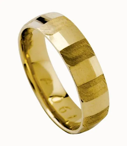 Žuto zlato. Širina prstena 5 mm. Moguća izrada u bijeloj ili crvenoj boji zlata.