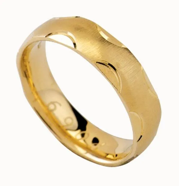 Žuto zlato. Širina prstena 5 mm. Moguća izrada u bijeloj ili crvenoj boji zlata.
