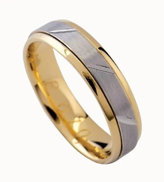 Kombinacija dvije boje zlata. Širina prstena 5 mm (5mm žuto dolje i 2,8 mm bijelo gore). Moguća je izrada i u drugim kombinacijama (bijelo-crveno, žuto-crveno), ili u jednoj boji.