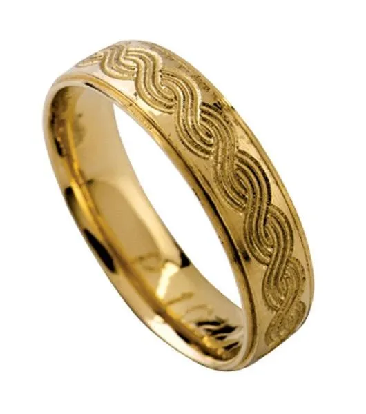 Žuto zlato. Širina prstena 5 mm. Moguća izrada u bijeloj ili crvenoj boji zlata.