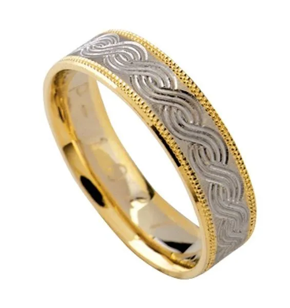 Kombinacija dvije boje zlata. Širina prstena 5 mm (1-3-1). Moguća je izrada i u drugim kombinacijama (bijelo-crveno, žuto-crveno), ili u jednoj boji.