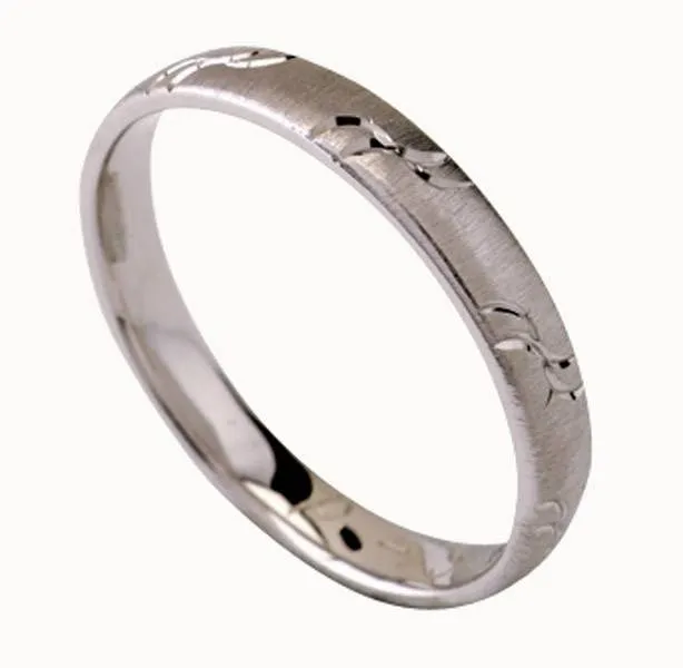 Bijelo zlato. Širina prstena 3 mm. Moguća izrada u žutoj ili crvenoj boji zlata.