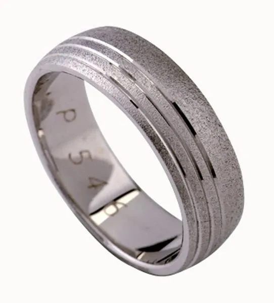 Bijelo zlato. Širina prstena 6 mm. Moguća izrada u žutoj ili crvenoj boji zlata. Cijena na upit.