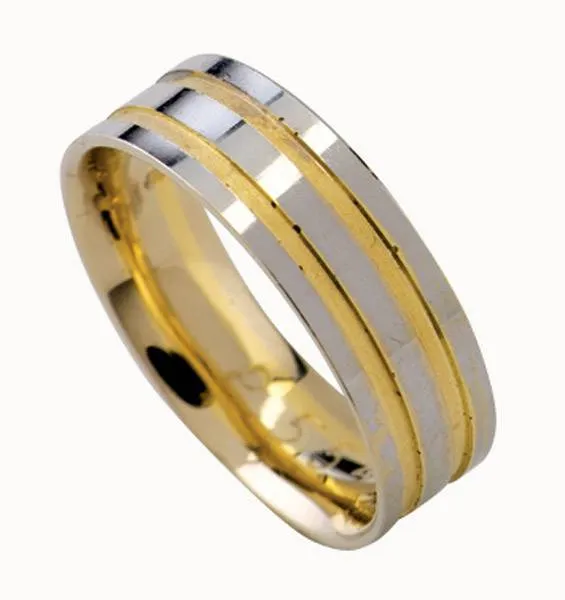 Kombinacija dvije boje zlata. Širina prstena 6 mm (1,4-0,8-1,6-0,8-1,4). Moguća je izrada i u drugim kombinacijama (bijelo-crveno, žuto-crveno), ili u jednoj boji. Cijena na upit.