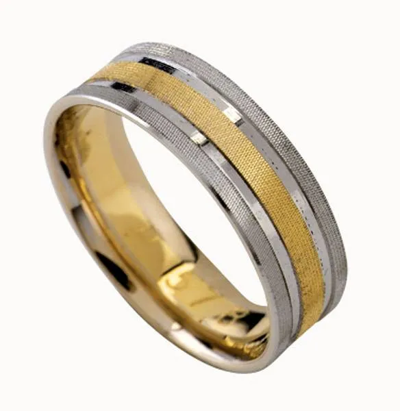 Kombinacija dvije boje zlata. Širina prstena 6 mm (2-2-2). Moguća je izrada i u drugim kombinacijama (bijelo-crveno, žuto-crveno), ili u jednoj boji. Cijena na upit.