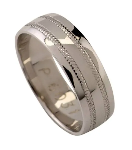 Bijelo zlato. Širina prstena 6 mm. Moguća izrada u žutoj ili crvenoj boji zlata. Cijena na upit.