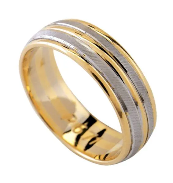 Kombinacija dvije boje zlata. Širina prstena 6 mm (1,1-1,35-1,1-1,35-1,1). Moguća je izrada i u drugim kombinacijama (bijelo-crveno, žuto-crveno), ili u jednoj boji. Cijena na upit.