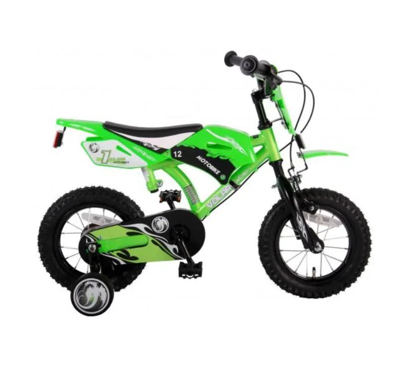 VOLARE DJEČJI BICIKL - MOTOR S DVIJE RUČNE KOČNICE 12" Sigurnost je na prvom mjestu! Zato ovaj cool bicikl ima dvije ručne kočnice (bez nožne kočnice) i zatvoreni štitnik lanca. Osim toga, bicikl ima odvojive pomoćne kotače za brzo učenje na biciklu i reflektore u kotačima, na prednjoj i stražnjoj strani bicikla. Mislilo se i na udobnost. Prekrasan zeleni Volare bicikl ima udobno meko trkaće sjedalo, posebno velike blatobrane i jedinstveni okvir motora. Kako biste što duže uživali u biciklu, upravljač je podesiv po visini. Ukratko: bicikl vrhunske kvalitete po super cijeni! Pogledaj više: https://sarenikutak.hr/trgovina/djecji-bicikli/djecji-bicikli-12/volare-djecji-bicikl-motor-s-dvije-rucne-kocnice-12/