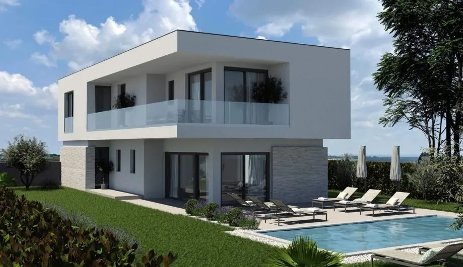 Nedaleko Vrsara i plaža smjestila se ova moderna vila u izgradnji. Plaža je udaljena svega 700m. Vila se smjestila na kraju samog naselja te zbog toga osigurava dodatni mir i privatnost.