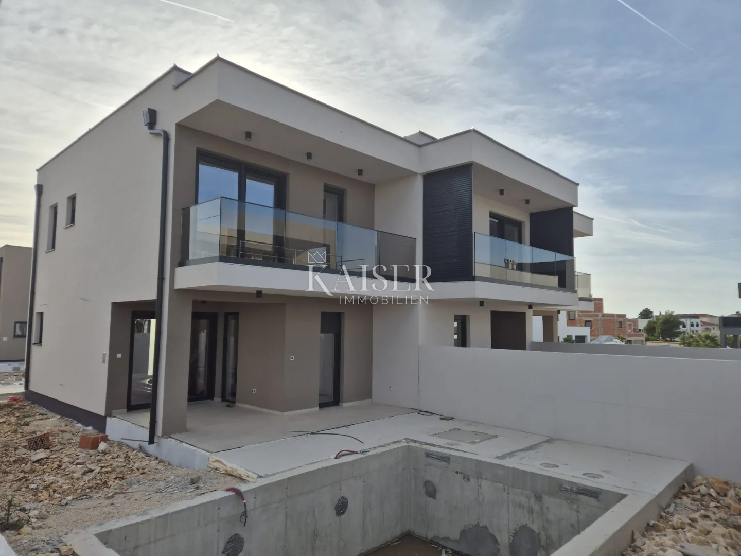 Vrsi, Mulo – Apartmani u novogradnji sa bazenom, odmah useljivi Prodaju se moderni dvoetažni apartmani u novogradnji, smješteni u mirnom dijelu Vrsi, svega deset minuta hoda od plaže i oko 1 km od centra naselja Vrsi–Mulo. Apartmani su dio niza kuća, od kojih dvije imaju i vlastiti privatni bazen. Opis apartmana Apartman se u prizemlju sastoji od prostranog dnevnog boravka (20,10 m²), odvojene kuhinje (7,71 m²), natkrivene terase (14,90 m²), gostinjskog WC-a, hodnika te stubišta koje vodi na kat. Na katu se nalaze tri spavaće sobe (11,60 m², 8,12 m² i 6,60 m²), kupaonica te loggia (8,03 m²). Ukupno je na raspolaganju oko 100 m² unutarnjeg prostora te približno 100 m² vanjskog dijela. Svakom apartmanu pripadaju i dva osigurana parkirna mjesta. Oprema i gradnja Ova nekretnina ističe se iznimnom kvalitetom gradnje i pomno odabranom opremom koja osigurava udobnost, energetsku učinkovitost i dugotrajnost. Idealna je za one koji traže moderan dom s vrhunskim završnim detaljima. Energetska učinkovitost i izolacija • PVC stolarija s ClimaGuard staklima – vrhunska toplinska i zvučna izolacija • ETICS fasadni sustav (12 cm) • Ravni krov s 15 cm izolacije Komfor grijanja i hlađenja • Podno grijanje u kupaonicama • Mitsubishi klima uređaji s Wi-Fi modulima za upravljanje na daljinu Materijali i završna obrada • Keramičke pločice visoke klase Marazzi Ragno • Staklene ograde, aluminijski limovi • Unutarnja vrata premium klase Lip Bled Kvaliteta gradnje • Besprijekorna izvedba od temelja do krova • Visokokvalitetna konstrukcija (betonske ploče, slojevita izolacija) • Korišteni samo provjereni, vrhunski materijali i oprema Potpuno opremljeni prostori • Moderna, potpuno opremljena kuhinja • Kupaonice s dizajnerskom sanitarijom: Geberit, Hansgrohe, Villeroy & Boch Lokacija Vrsi je mirno mediteransko mjesto na sjeverozapadnom dijelu zadarskog priobalja, poznato po čistom moru, uređenim plažama i očuvanoj prirodi. Idealno je za one koji traže opušteno okruženje uz sve osnovne sadržaje – trgovine, kafiće, restorane i usluge u samom mjestu. Od Zadra je udaljeno svega 20 minuta, a u blizini se nalaze Nin i Zaton. Savršena lokacija za miran život, odmor ili investiciju, uz odličnu prometnu povezanost i autentičan mediteranski ugođaj. Provizija agencije za kupca iznosi 3 % + PDV i plaća se u slučaju kupovine nekretnine, kod zaključenja prvog pravnog akta. Kontaktirajte nas s povjerenjem za više informacija i dogovor oko razgledavanja. Tel: +385958122353 Email: kristina@kaiser-immobilien.hr ID KOD AGENCIJE: 142-19 Kristina Rudan Agent s licencom u posredovanju u prometu nekretnina Mob: +385958122353, +385995677888 E-mail: kristina@kaiser-immobilien.hr www.kaiser-immobilien.hr