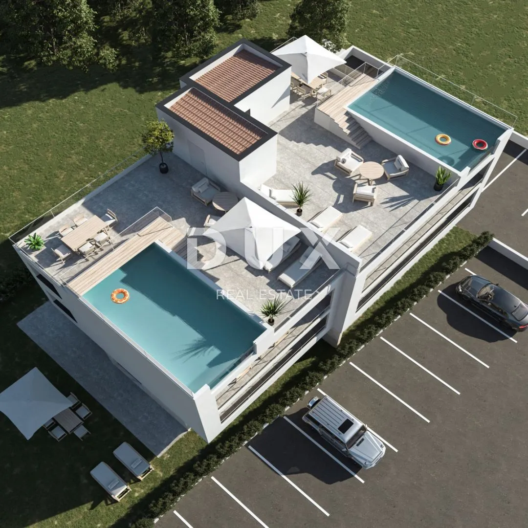 ZADAR, BIBINJE - penthouse sa bazenom U Bibinjama, u neposrednoj blizini plaže, prodajemo predivan dvoetažni stan. Nalazi se na drugom katu novoizgrađene zgrade. Sastoji se od ulaznog prostora, dvije kupaonice, dvije spavaće sobe i dnevnog prostora. Dnevni prostor uključuje kuhinju, blagovaonski dio, dnevni boravak te lođu sa koje se pruža predivan pogled na more i mjesto. Unutarnjim stepenicama dolazimo na drugu etažu gdje je smješten toalet, te velika terasa s sa sunčalištem i bazenom. Stanu pripada drvarnica i parkirno mjesto. Nekretnina je opremljena visokokvalitetnim materijalima i opremom, i kao takav je na prodaju. Poštovani klijenti, agencijska provizija naplaćuje se u skladu s Općim uvjetima poslovanja. www.dux-nekretnine.hr/opci-uvjeti-poslovanja ID KOD AGENCIJE: 18766 Lejla Jajčanin Agent s licencom Mob: +385 91 934 2513 Tel: +385 91 480 8808 E-mail: lejla@dux-nekretnine.hr www.dux-dalmacija.com