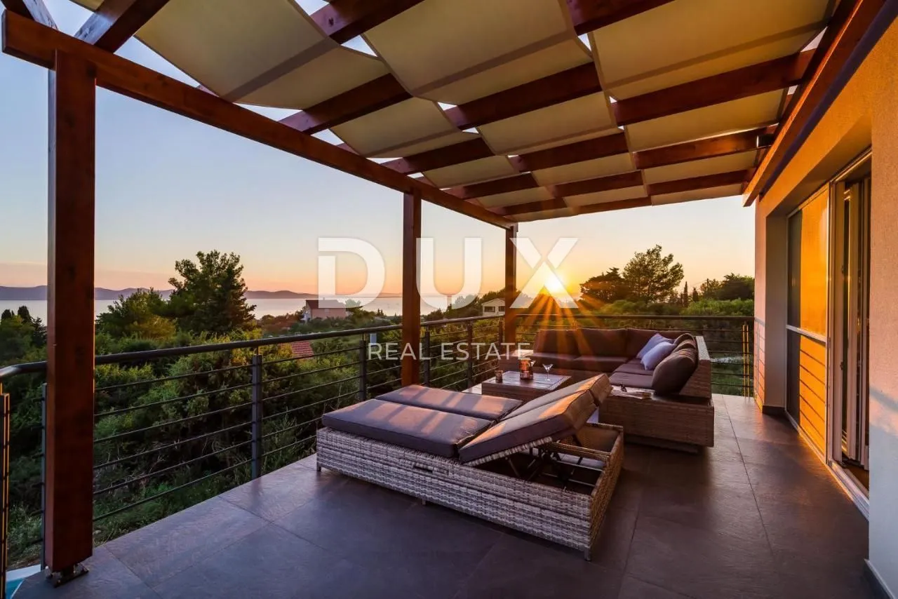 ZADAR, DIKLO - Luksuzna vila s bazenom i pogledom na more Prodaje se prekrasna vila s bazenom u mjestu Diklo pokraj Zadra. Vila je smještena na izoliranoj poziciji, pružajući kompletnu privatnost kao i očaravajući pogled na more i zalazak sunca. Vila ukupne stambene površine 200 m2 smještena je na parceli od 589 m2. Sastoji se od prizemlja i kata. Gornji kat sadrži prostrani dnevni boravak, kuhinju i blagovaonicu, te dvije luksuzno uređene spavaće sobe s pripadajućim kupaonicama. U prizemlju se nalaze dvije spavaće sobe s kupaonicama i izlazom na terasu, dodatni WC, jedno spremište, vešeraj i soba za igru. U prostranom dvorištu vile nalazi se bazen, ljetna kuhinja, vanjski roštilj te privatni parking. Najbliža plaža udaljena je 650 m. Centar grada Zadra udaljen je manje od 4 km. U neposrednoj blizini nalazi se raznovrstan sadržaj poput restorana i trgovina. Zadar je urbani i turistički centar Sjeverne Dalmacije, grad koji osim duge povijesti i kulturne raznolikosti nudi i bogatu gastronomsku ponudu. U okolici Zadra nalaze se razna zanimljiva mjesta poput povijesnih gradova Biograda na Moru ili Nina te brojnih otoka na Jadranskoj obali. Poštovani klijenti, agencijska provizija naplaćuje se u skladu s Općim uvjetima poslovanja www.dux-nekretnine.hr/opci-uvjeti-poslovanja ID KOD AGENCIJE: 16755 DUX Nekretnine Mob: +385 91 480 8808 Tel: +385 99 640 8438 E-mail: info@dux-nekretnine.hr www.dux-nekretnine.hr