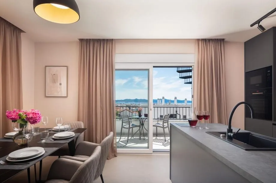 The apartment is located in the newly built part of Zadar, and the building is surrounded by newly built smaller residential buildings and urban villas.