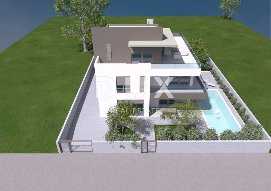 ZADAR, ZATON – Luksuzna kuća s bazenom, pogledom na more i samo 200 m od plaže Prodaje se moderna, luksuzna kuća u izgradnji na odličnoj lokaciji u Zatonu, u neposrednoj blizini mora. Ukupne neto površine 180,36 m², ova nekretnina se prostire na tri etaže – prizemlje, kat i potkrovlje. U prizemlju se nalazi prostrani dnevni boravak povezan s blagovaonicom i kuhinjom, toalet za goste, ostava, tehnička soba (praonica) te ulazni hodnik. Unutarnje stubište vodi na kat gdje se nalazi glavna spavaća soba s vlastitom kupaonicom i garderobom, uz još dvije spavaće sobe koje također imaju vlastite kupaonice. U nastavku se stubištem dolazi do potkrovlja u kojem je smještena četvrta spavaća soba, također s vlastitom kupaonicom i garderobom, dodatna ostava, još jedna galerija te velika krovna terasa površine 51,42 m² s prekrasnim pogledom na more. Okućnica je u cijelosti ograđena, djelomično popločana, a djelomično uređena mediteranskim biljem. U dvorištu se nalazi bazen sa sunčalištem i četiri privatna parkirna mjesta. Kuća će biti potpuno namještena i opremljena vrhunskim materijalima – podno grijanje u cijelom objektu putem dizalice topline, klima uređaji u svakoj sobi, električne rolete, PVC stolarija i prvoklasni parket. Izgradnja je započela 2025. godine, a završetak se očekuje 2026. Postoji mogućnost kupnje u fazi gradnje uz dogovor s vlasnikom oko detalja i cijene. Zaton je mirno i popularno turističko naselje, poznato po lijepim plažama, čistom moru i odličnom prometnom položaju. Smješten je između povijesnog Nina i grada Zadra, što ovu lokaciju čini iznimno pogodnom za obiteljski život, ali i za luksuzni turizam. Poštovani klijenti, agencijska provizija naplaćuje se u skladu s Općim uvjetima poslovanja www.dux-nekretnine.hr/opci-uvjeti-poslovanja ID KOD AGENCIJE: 40805 Dux Zadar Mob: +385 99 448 3756 Tel: +385 91 480 8808 E-mail: info@dux-nekretnine.hr www.dux-dalmacija.com Josip Šestan Agent s licencom Mob: +385 91 799 6986 Tel: +385 91 480 8808 E-mail: josip@dux-dalmacija.com www.dux-dalmacija.com
