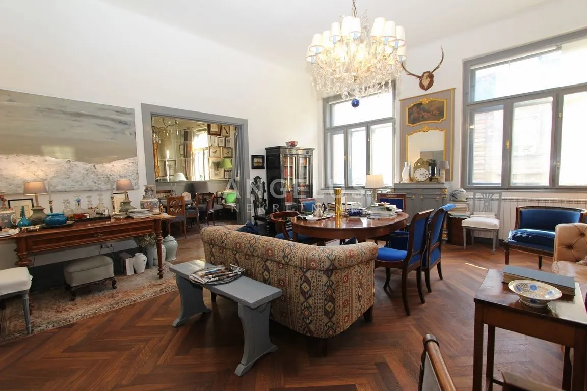 Prekrasan stan površine cca 112m2 kompletno je renoviran 2018. poštujući prvotni sjaj tog salonskog stana. Parketi su u većini stana sačuvani i renovirani kako je nekad bilo, postavljeni su na OSB ploče, instalacije su sve kompletno promijenjene, stolarija je kompletno obnovljena s tim da na istočnoj strani je vanjska drvena stolarija zaminjena u PVC stolariju.