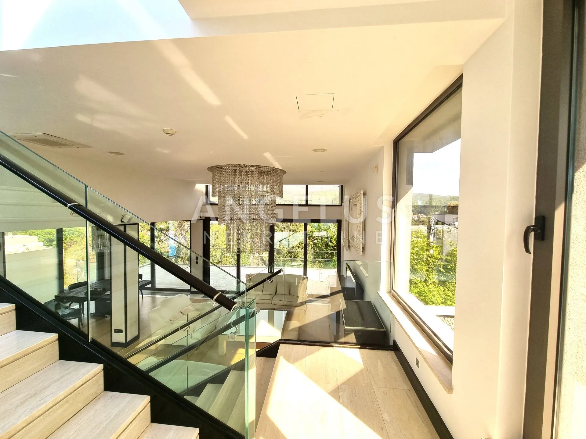 Ova zaista jedinstvena kuća dizajnirana je s puno pažnje i opremljena je najkvalitetnijim materijalima. Stakleno stepenište i velike staklene stijene zaslužni su za obilje dnevnog svijetla u cijeloj kući a zrcalne površine, kamen i raskošna rasvjetna tijela dodaju tom dojmu. Kuća je opremljena video-nadzorom, vatroalarmom, a zahvaljujući smart-house sustavu, svime se može upravljati preko aplikacija. Stolarija je aluminijska s roletama s električnim upravljanjem. Pred kućom se nalazi natkriveni prostor za 3 automobila uz još jedno parkirno mjesto ispred dvorišnih vrata.