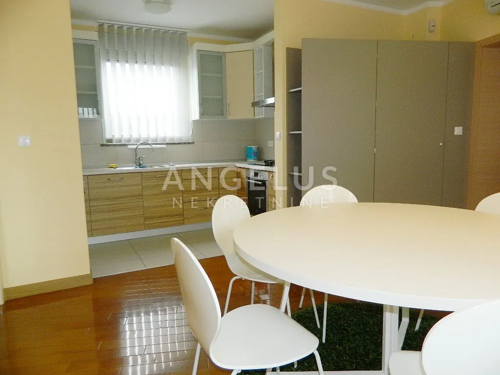 Nalazi se na zadnjem katu novije zgrade a, sastoji se od dvije spavaće sobe, ulaznog hodnika, 2 kupaonice, kuhinje sa blagovaonicom, garderobe, dnevnog boravka i dvije terase (31,51 m2 i 28,92 m2). Potpuno je namješten i ima parkirno mjesto u dvorištu zgrade. Plinsko centralno grijanje, klimatizirano. Dostupan za najam od 10. listopada 2025.