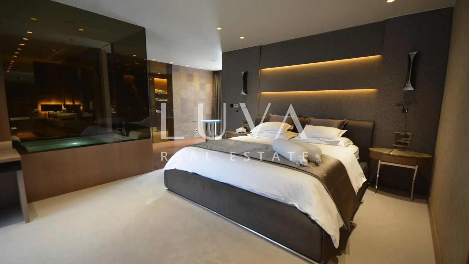 Prodaje se luksuzan moderno uređen prostrani penthouse u armirano betonskoj zgradi novije gradnje. Stan se nalazi na 5. Katu, a zgrada ima 2 lifta koja su povezana s garažom. Stan ima 276,49 m2 neto površine, 213,20 m2 površine terase i 55,02 površine 3 garaže što zajedno čini 544,71 m2 bruto, odnosno 367,96 m2 neto površine prema obračunskim koeficijentima. Stan se sastoji od prostranog dnevnog boravka, kuhinje s blagovaonicom, 2 velike spavaće sobe, 2 kupaonice i velike terase. Velika, master spavaća soba ima sobu za garderobu i veliku kupaonicu sa saunom i Jacuzzijem. Stan je opremljen vrhunskom tehnikom i namještajem, a samo neke od najbitnijih stvari su: - Sonos multi room sustav - KNX sustac upravljanja (grijanje, hlađenje, rasvjeta, podizanje/spuštanje roleta) - Video nadzor unutar i izvan stana - Zaštitarska službe 24/7 - Axor miješalice za slavine ID KOD AGENCIJE: 15122 Ivan Jelaska Mob: +385 91 288 0082 E-mail: ivan@luvarealestates.com www.luvarealestates.com
