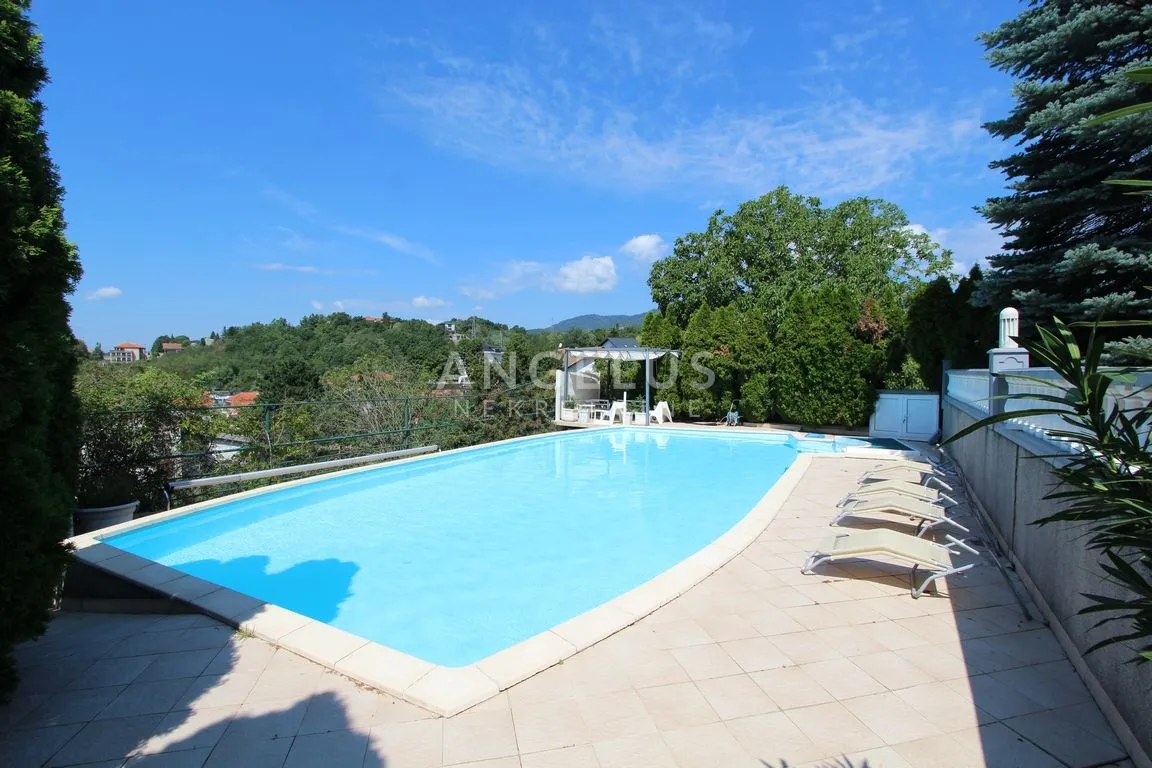 Ima duplu garažu i nekoliko parkirnih mjesta u vrtu. Klimatizirano, plinsko centralno grijanje, sjenica, bazen (12 X 6 m), roštilj.