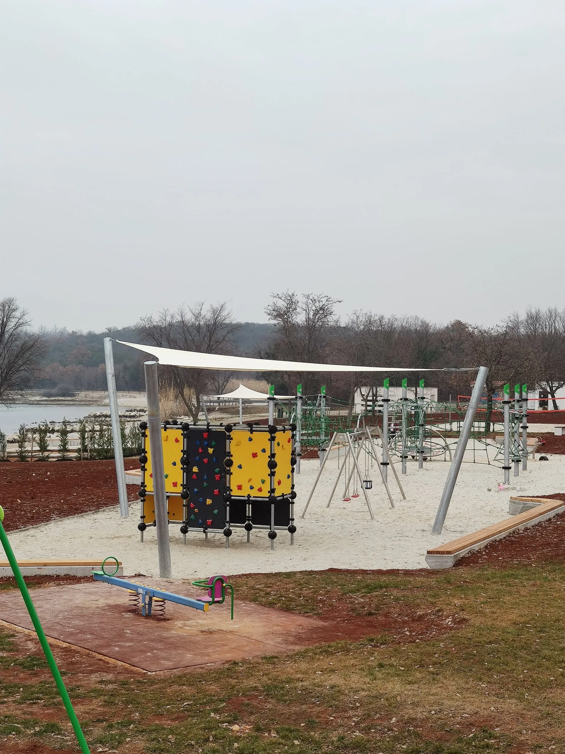 Izrada i montaža jedra za zaštitu od sunca dječjeg igrališta na lokaciji plaža Materada. Tent mesh tkanina, visoka otpornost na jak vjetar i razne klimatske utjecaje kako ljeti tako i zimi.