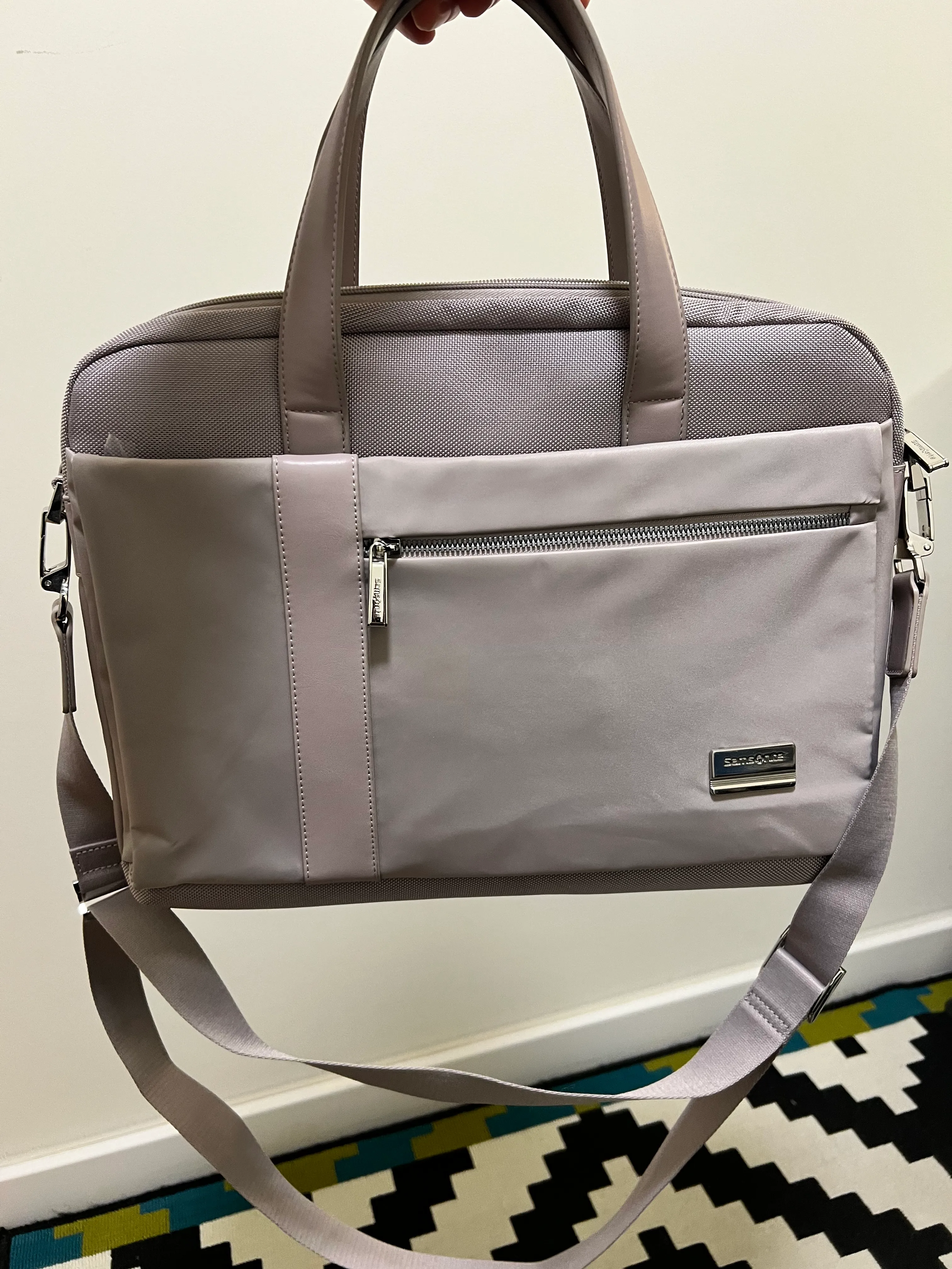 Prodajem novu žensku laptop torbu Samsonite OPENROAD CHIC 2 SLIM BAILHANDLE za laptope do 15.6 inča. Torba je u bež/sivoj boji s elegantnim dizajnom i kvalitetnom izradom. Ima glavni pretinac s podstavom za zaštitu laptopa, dodatni prednji džep na patent zatvarač za lakši pristup sitnim stvarima, te udobne ručke i podesivi remen za nošenje preko ramena. Prostrana je i funkcionalna, a istovremeno elegantna.