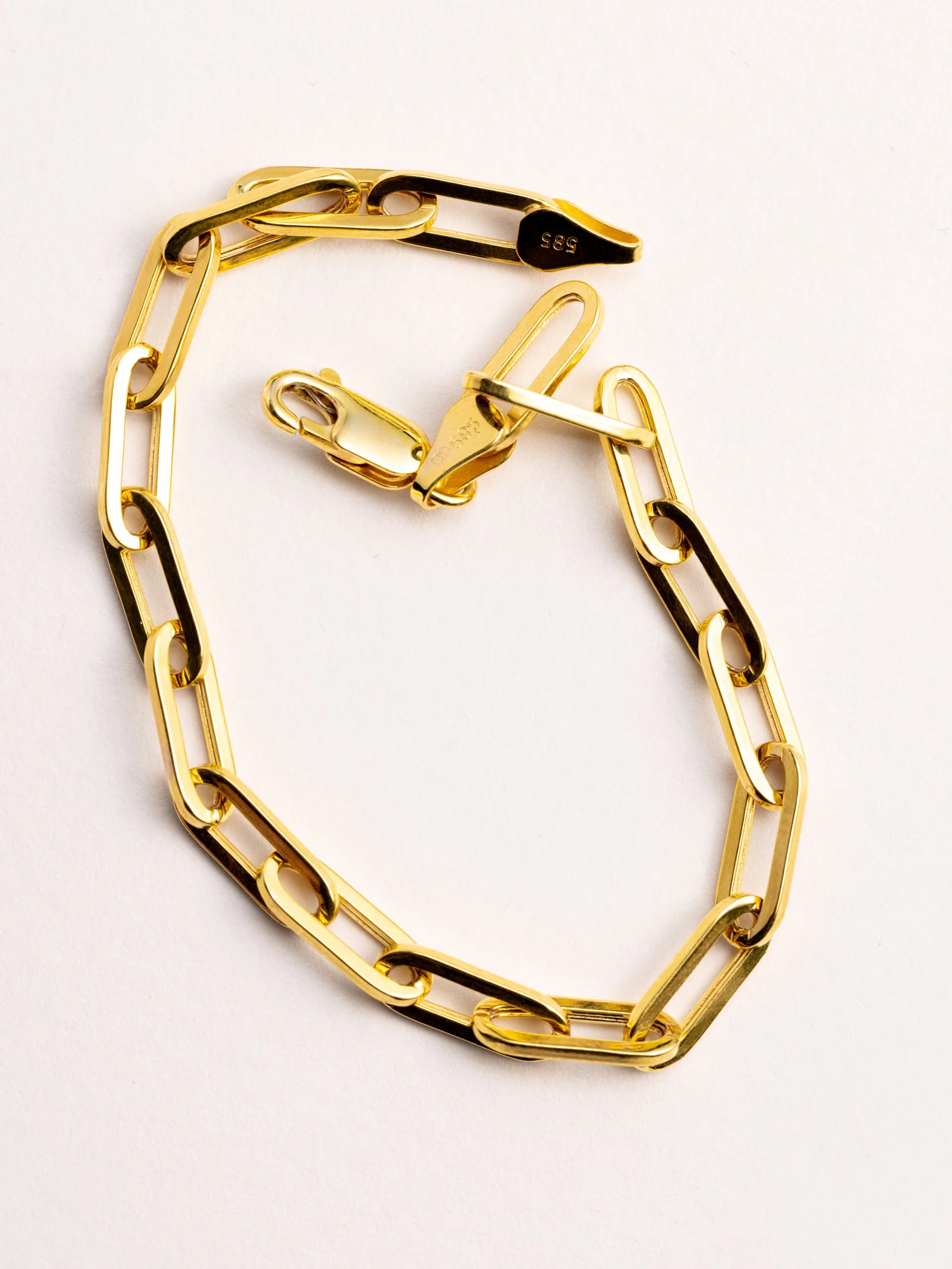 zlatna narukvica popularnog je, no jednostavnog dizajna i idealno se uklapa u sve prilike kojima prisustvujete.