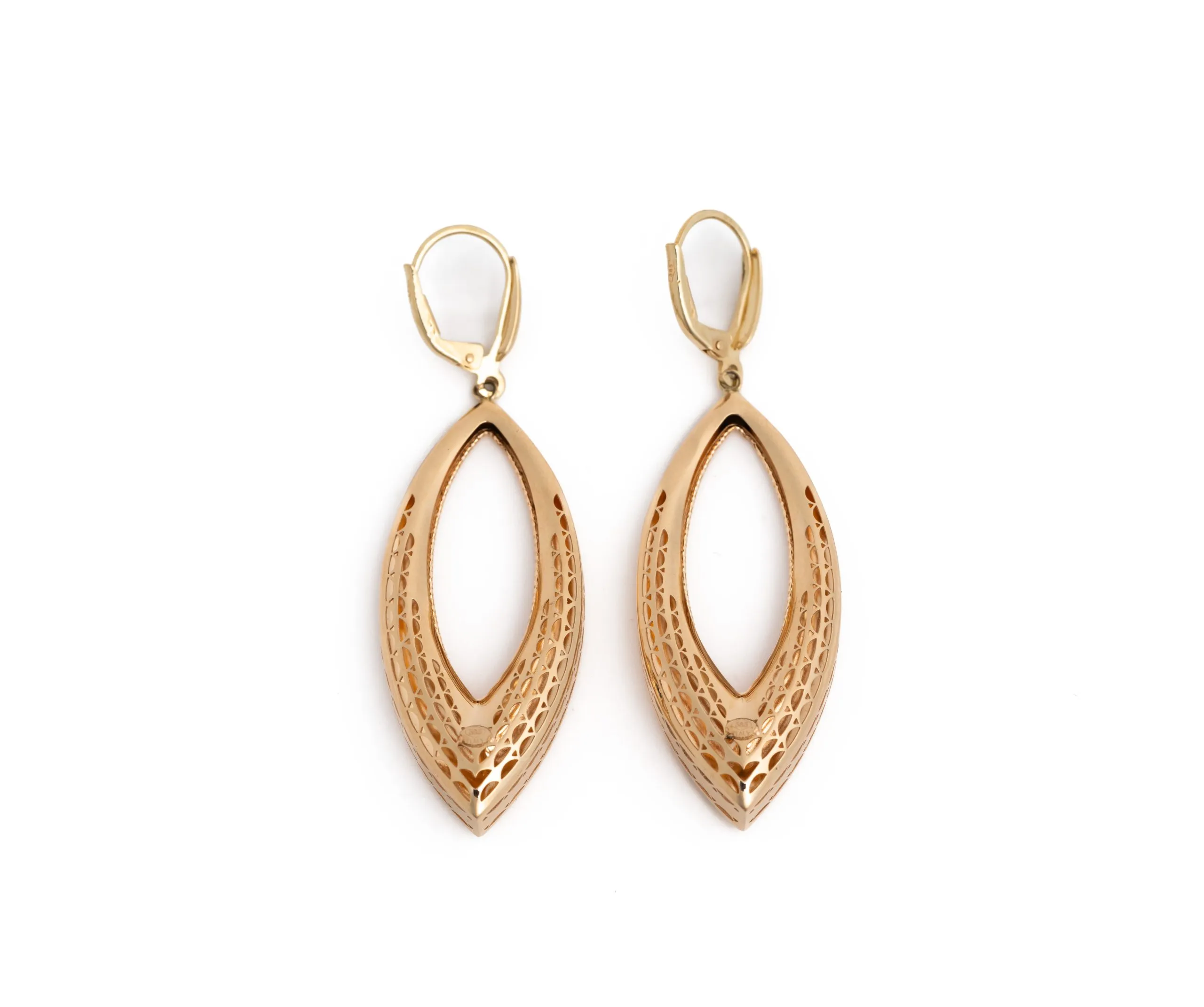 Ove elegantne viseće naušnice u žutom zlatu unose dašak sofisticiranosti i elegancije u svaki look. S njihovim fluidnim i modernim dizajnom, savršeno se prilagođavaju svakodnevnim i formalnim prigodama, ističući ljepotu žene koja ih nosi. Ove naušnice imaju delikatnu, ali upečatljivu siluetu, koja uz lagano kretanje stvara suptilnu igru svjetlosti. Kvalitetno izradene od 14-karatnog žutog zlata, one su pravi izbor za ljubiteljice sofisticiranog nakita koji zrači luksuzom. Bilo da se nose uz elegantnu večernju haljinu ili uz ležerniji dnevni outfit, ove naušnice uvijek će privući pažnju.