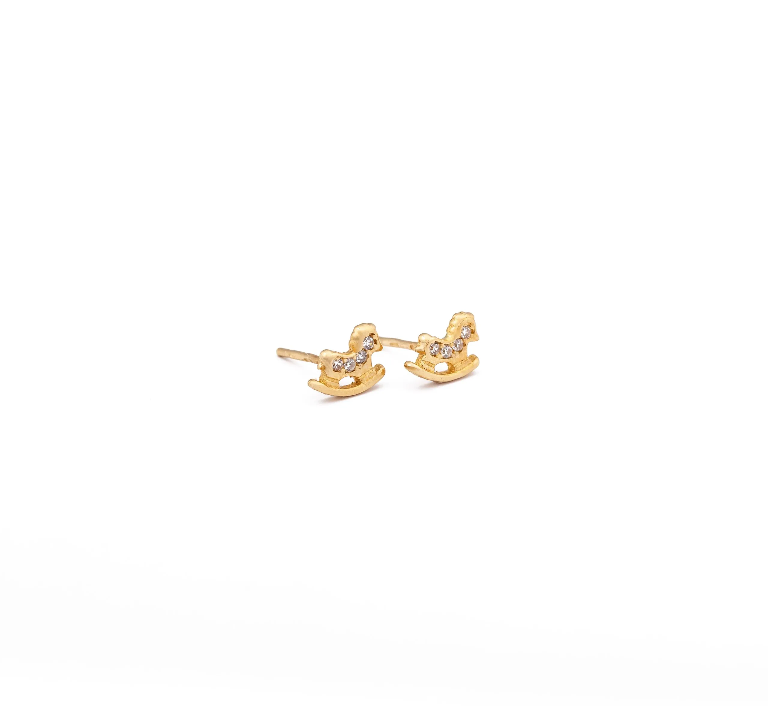 Dječje zlatne naušnice u obliku konjića sa cirkonima savršen su izbor za male ljubitelje konja i dječji nakit. Ovaj nježni i simpatični dizajn donosi veselo i razigrano značenje, a cirkoni dodaju dašak blistavosti i šarma, čineći naušnice posebnim komadom nakita za svaku priliku.