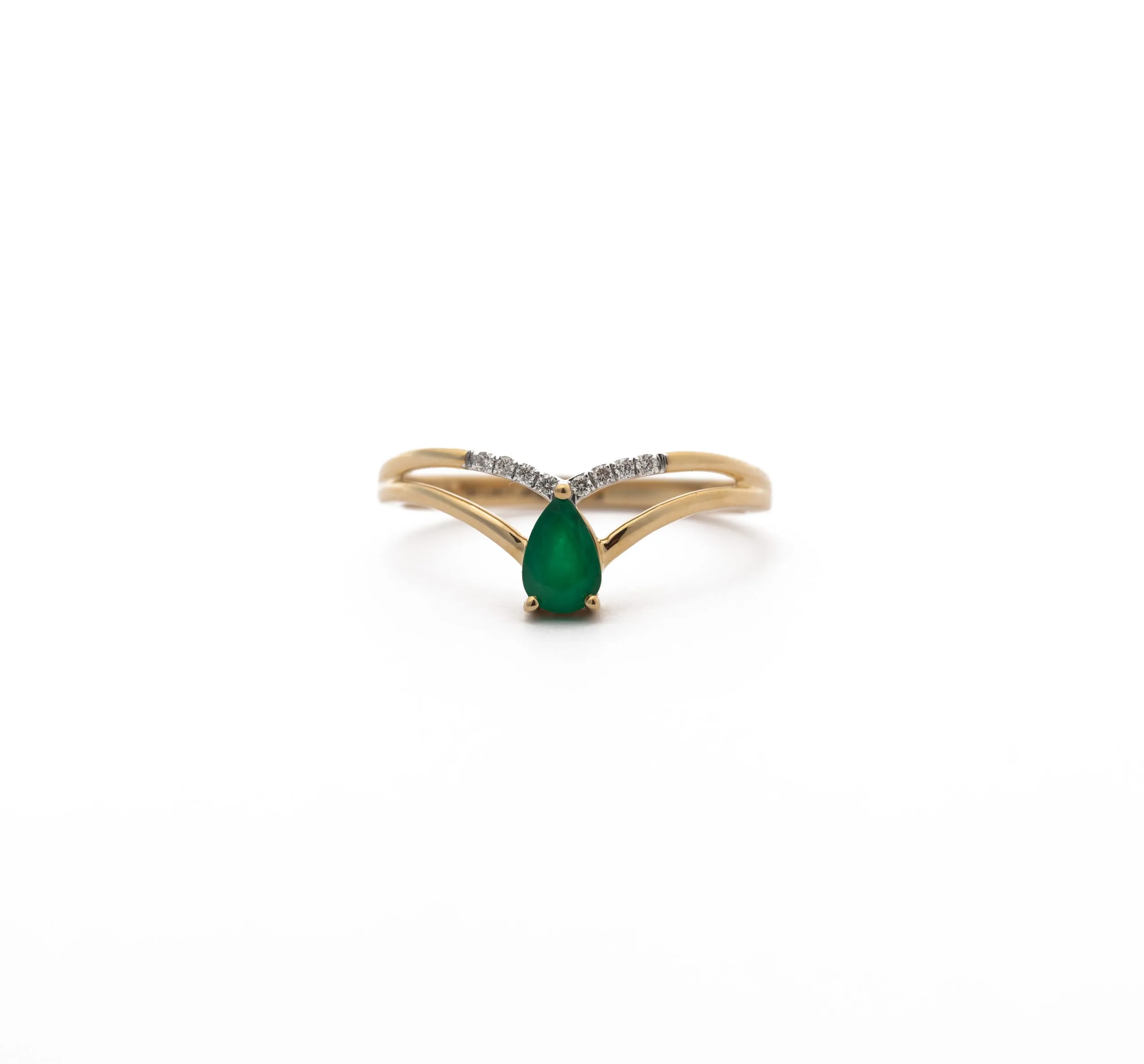 Ovaj prsten u žutom zlatu s smaragdom u obliku suze i bočnim dijamantima od 0,04 ct donosi prekrasnu kombinaciju boje i blistavosti. Smaragd, sa svojom dubokom zelenom nijansom, zauzima središnje mjesto, dok dijamanti s obje strane dodaju luksuzan sjaj i sofisticiranost. Ovaj elegantan dizajn savršeno se uklapa u posebne prilike, čineći ga idealnim izborom za poklon ili kao simbol ljubavi i odanosti.