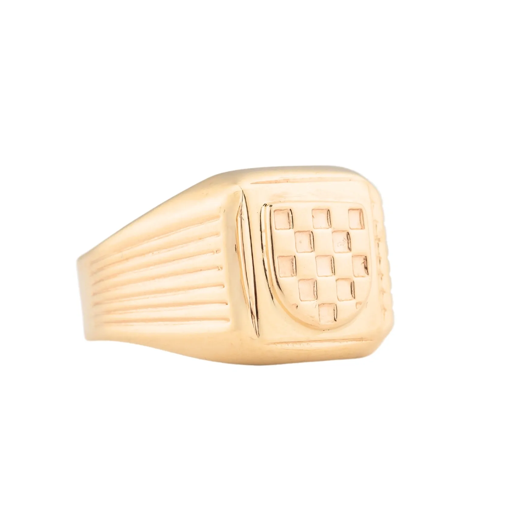 Muški prsten u žutom zlatu sa motivom šahovnice.
