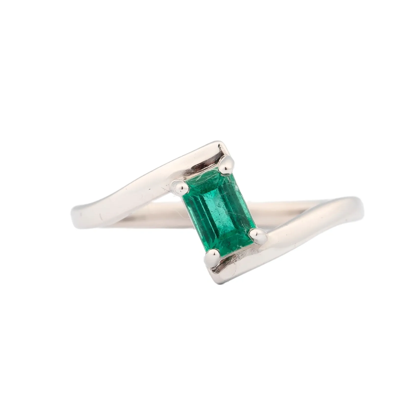 Ženski prsten izrađen od 14ct bijelog zlata sa dragim kamenom smaragdom od 0,66ct.