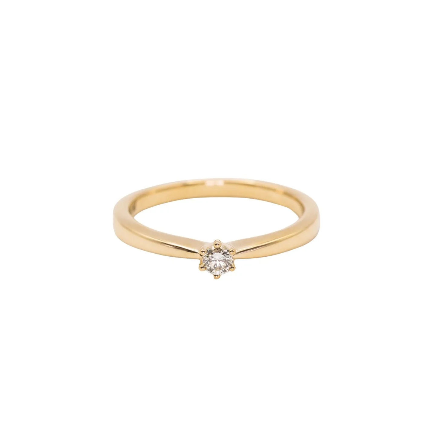 Ženski prsten izrađen od 14ct žutog zlata sa 0,1ct dijamantom.
