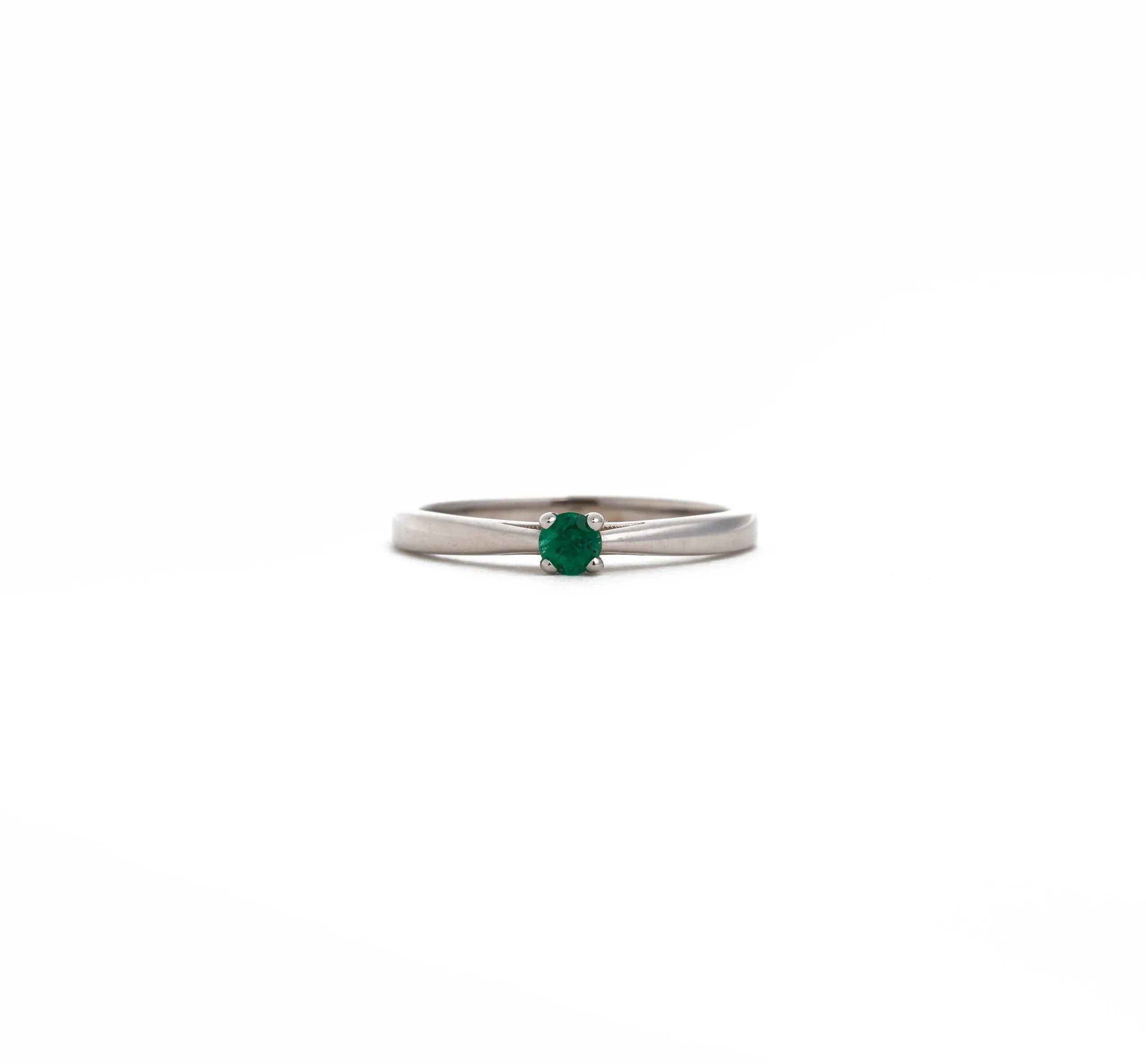 Ovaj prsten od bijelog zlata s dragim kamenom smaragdom donosi elegantan i luksuzan izgled. Smaragd, poznat po svojoj prekrasnoj zelenoj boji, stvara prekrasan kontrast s sjajem bijelog zlata, čineći ovaj komad posebno upečatljivim. Njegov klasičan dizajn savršeno je prikladan za posebne prigode ili kao simbol ljubavi i odanosti.